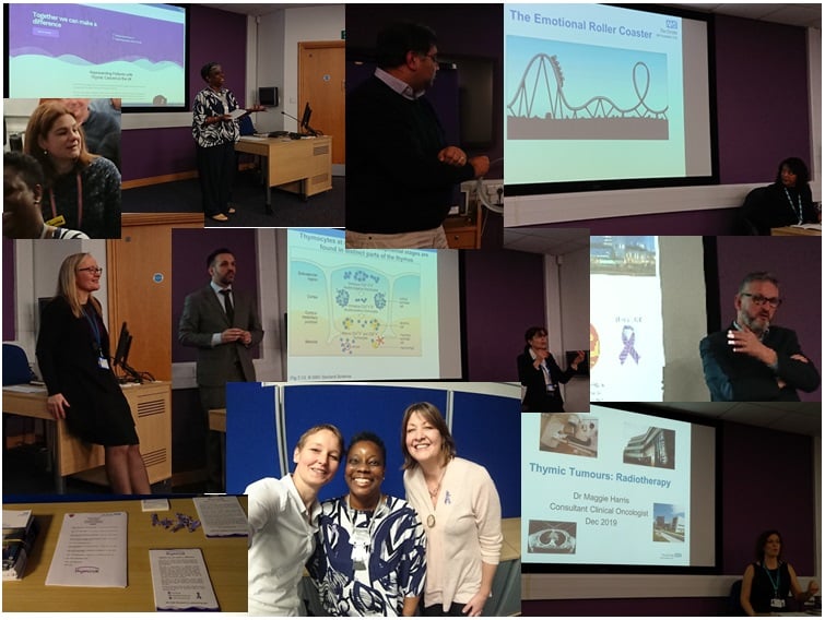 Interesting and informative presentations were given from the fields of oncology (Dr Rohit Lal, and Dr David Gilligan), surgery (Mr Andrea Billie), immunology and immunological complications (Dr Hana Alachkar), supportive care and survivorship (Dr Colsom Bashir), and radiotherapy (Dr Maggie Harris). There then followed a Q&A with Dr Yvonne Summers, and the specialist nurses Marrika Colvin and Marie Eaton. Notes from all the presentations are available to ThymicUK members.